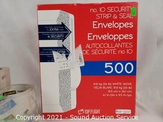 Lot #0287: 500ct #10 Security Envelopes & Scotch Tape