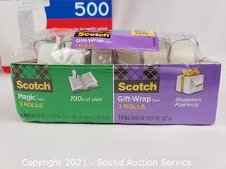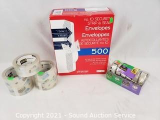 Lot Details: Includes 3 rolls magic tape, 3 rolls gift tape, 5 rolls heavy duty packing tape and approx. 500 4.1" x 9.5" #10 security seal envelopes.