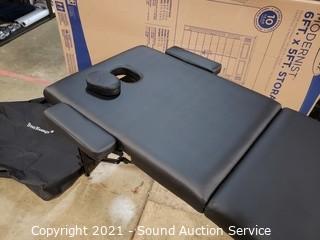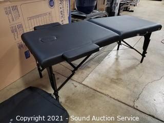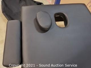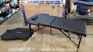 Lot Details: One clasp that holds table closed is kind of loose, travel bag has some small holes. No other issues. 27" x 72".
