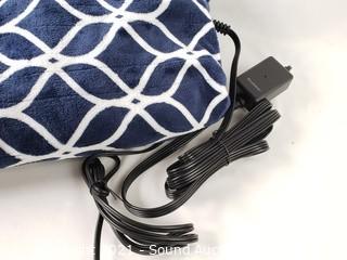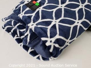 Lot #0243: Brookstone Blue/White Plush Heated Throw