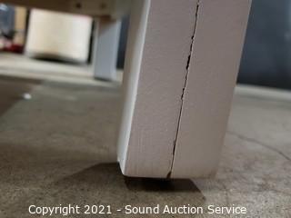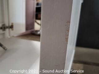 Lot Details: Back left leg has a split in it & missing hose weight for faucet, otherwise like new. 34" H x 22" W x 18" D.