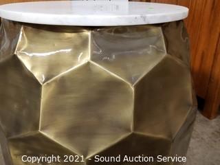 Lot #0157: Marble Top Metal Base Side Table/Plant Stand