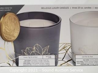 Lot #0085: New 3pk Bellevue Luxury Scented Candles