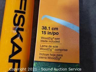 Lot #0406: New Fiskars 16ft Telescopic Pole Saw & Pruner