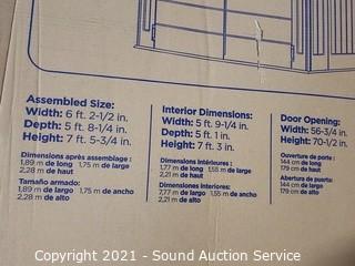 Lot Details: Model BMS6580. 200cu.ft. of storage. Assembled size: 7.5ft H x 6.2ft W x 5.8ft D. Factory sealed in original packaging. Multi-wall resin panels are engineered for strength and durability All-weather construction provides water resistance and UV protection. Roof is capable of holding a snow load of up to 30 lbs/ft2. Features a full steel skeleton frame for maximum strength under heavy snow loads.