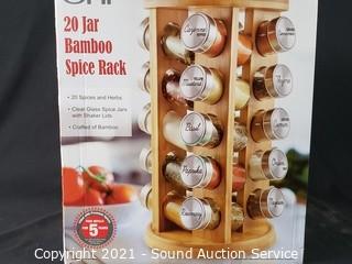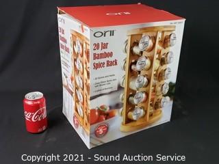 Lot #0453: Orii 20-Jar Bamboo Spice Rack w/Spices