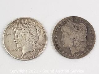Lot #0098: 1926 Peace Dollar & 1900 Morgan Silver Dollar