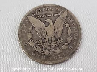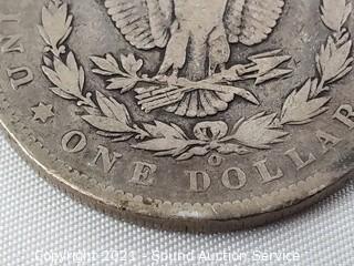 Lot Details: Morgan dollar, 90% silver, 10% copper, 26.73 grams, 38.1 mm, "O" mint mark, peace dollar, 90% silver, 26.73 grams, 38.1mm, San Francisco mint mark.