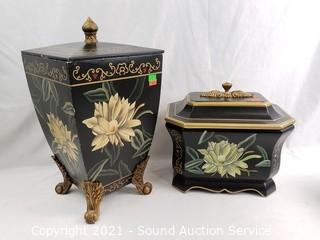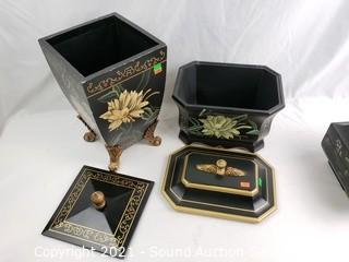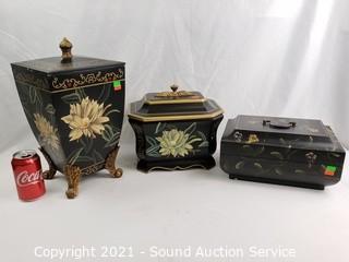 Lot #0091: 3 Hand Painted Floral Decorative Boxes w/Lids