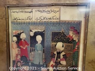 Lot Details: Includes "Grand Opening IV" by Maureen Love, 16.5" x 13.5", "Song Birds" by Chad Stase, 22" x 17" and vintage middle eastern print (do not see a signature), 25.75" x 20.5". All framed and matted with glass.