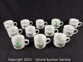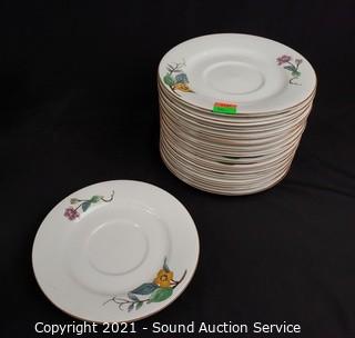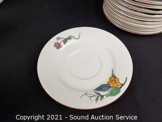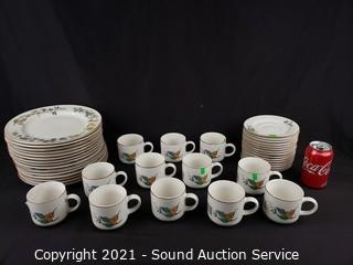 Lot Details: Includes 15 dinner plates, 15 saucers and 12 cups. One cup has a small chip on the inner edge.