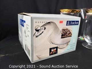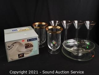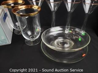 Lot #0163: Cake Plate, Center Bowl, Vases & Candle Holders