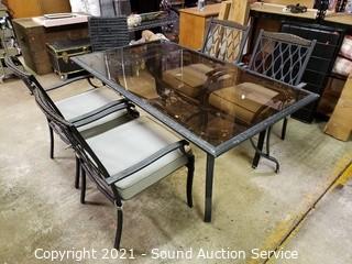 Lot #0073: Hampton Bay Patio Glass Top Table & Chair Set