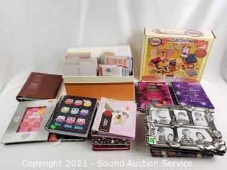 Lot Details: Comes with card crafting kits, planners, 3" x 5", 4" x 6" picture frames, journals and greeting cards.