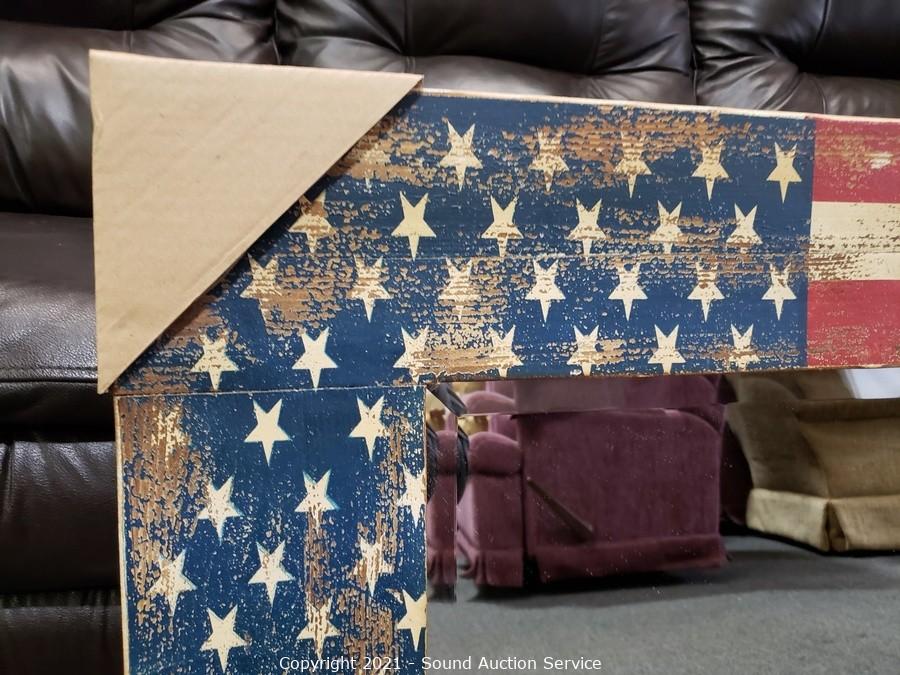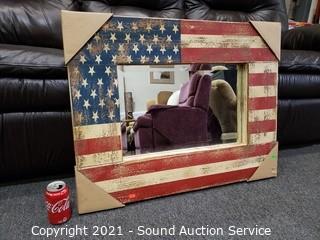 Lot #0250: New Distressed Finish American Flag Beveled Mirror