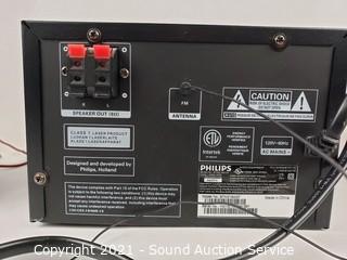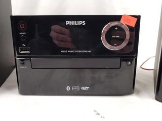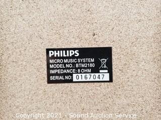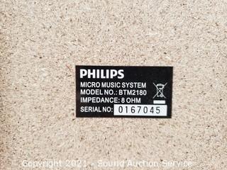 Lot Details: Model BTM2180. Works. 4.5" x 7" x 8.75" with (2) 10" x 5.5" x 7.5" speakers.