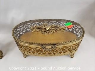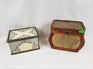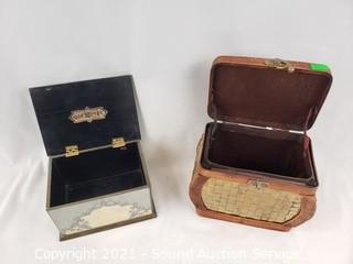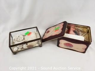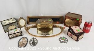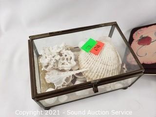 Lot Details: One box has seashells, another is missing the pin for the hinge. Smallest is 2.5" x 5" x 3.5", largest is 6" x 7" x 4". Tray is 9" x 17".