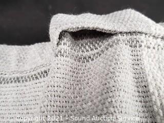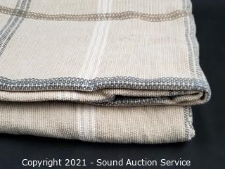 Lot Details: 60" x 70", gray and beige, one has some snags, seam is bad in spots on the other.