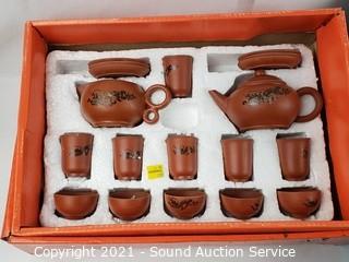 Lot #0025: 2 Vtg. Anchor Hocking Snack Sets & Chinese Tea Set