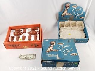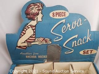 Lot Details: Each Anchor Hocking Snack set is service for 4. All are complete with original boxes. Boxes have some wear, refer to photos.