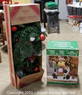 Lot #0387: 9ft Pre-Lit Garland & Holiday Moose