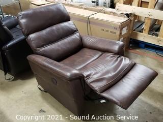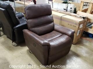 Lot #0009: Nice Brown Leather Power Recliner - Works