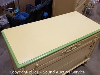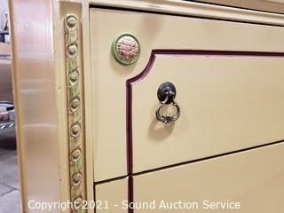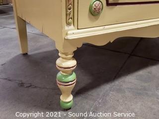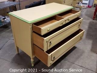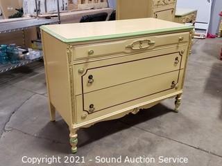 Lot #0001: Vtg. Yellow & Green Painted 3 Drawer Dresser