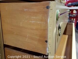 Lot Details: Solid wood construction, dovetail joinery. In overall great condition. Top drawer is sectioned. 34" H x 46" W x 21" D. Matches the next few lots.
