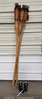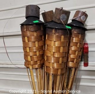Lot #0070: 4 Bamboo Tiki Torches w/Spare Inserts & Wicks