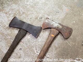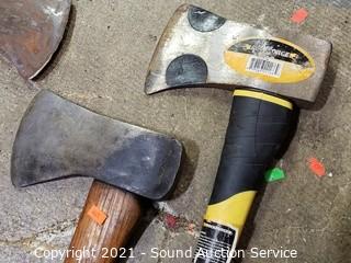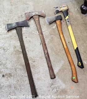 Lot Details: Includes Rock Forge 3.5lb fiberglass handle and 3 wood handle (2 are double bit), single bit is Master Mechanic.