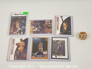Lot #0019: 6 Kobe Bryant Cards w/Red Foil & Replica Ring
