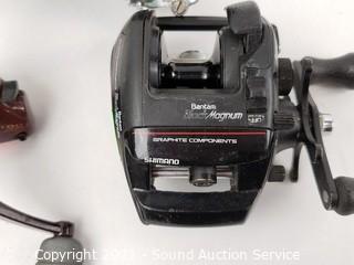 Lot Details: Includes (2) Garcia Mitchell 300, Shimano Bantam Black Magnum, Quantum Light LT00. Shakespeare Microcast, Shimano FX2000 FA and Shimano Mark II Q.