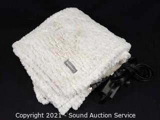 Lot #0427: Brookstone 50" x 60" Cream Plush Heated Throw