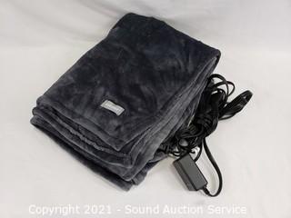 Lot #0398: Brookstone 50" x 60" Dark Grey Plush Heated Throw