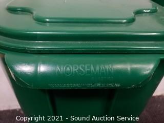 Lot #0016: Green Norseman Rolling Lift-Top Trash Can
