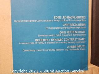 Lot Details: 720p resolution, 2 HDMI ports, works, complete in original box. Model LE1912.