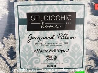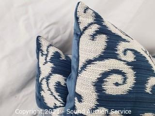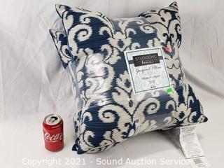 Lot #0015: 2 New Studio Chic Jacquard Blue/Grey 20" Pillows