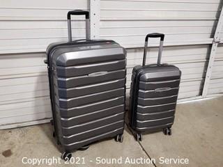 Lot #0072: 2 Samsonite Dk. Grey Hard-Side Spinner Luggage