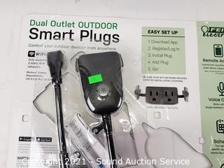 Lot #0418: 3 Feit Dual Outlet Smart Plugs & Stake Outlet
