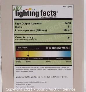 Lot Details: Brushed nickel finish with white acrylic lens. 24W, 1400L, 3000K color. Works, complete, no issues.
