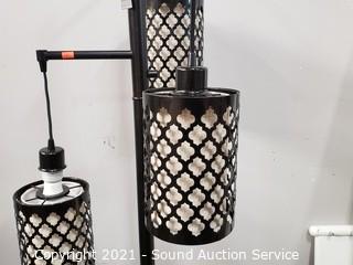 Lot Details: Antique golden sand finish. 4-way switch. Works, one is missing the screw ring to hold the lamp shade on, otherwise like new.. 73" H x 18" Dia.