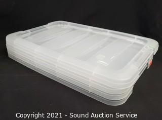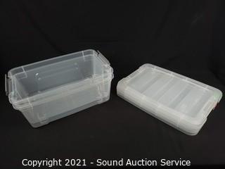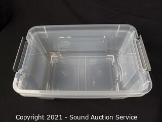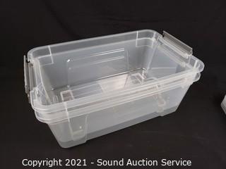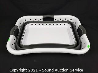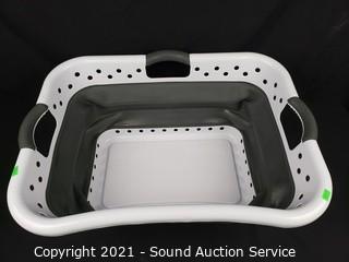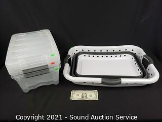 Lot #0138: Collapsible Laundry Basket & 2 Clear Plastic Totes