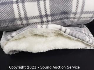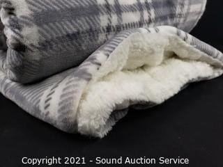 Lot Details: 60" x 70", white side is pilling a little bit, otherwise like new.