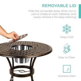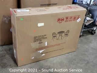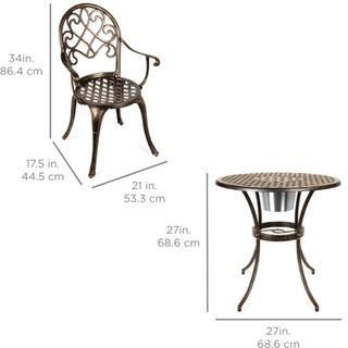 Lot Details: 27" x 27" diameter table, 34" x 17.5" x 21" chairs. Has center ice bucket insert. Like new, unassembled in original box, appears complete.