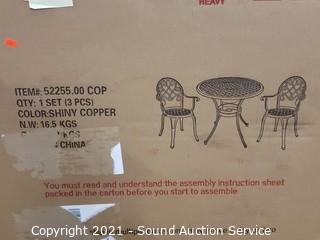 Lot #0471: New Cast Aluminum Copper Finish Patio Bistro Set