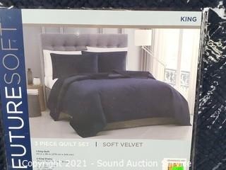 Lot #0427: New Future Soft King 3pc Dark Blue Quilt Set