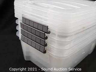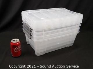 Lot #0022: Set of 4 12.9qt Clear Plastic Storage Totes w/Lids
