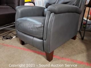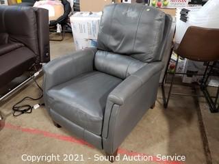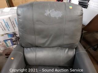 Lot Details: Some wear to the headrest, refer to photos. Top grain leather with vinyl match on sides and back. 37" H x 29" W x 19" to seat.