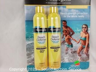 Lot #0375: 2pk Neutrogena Beach Defense SPF60 Sunscreen Spray