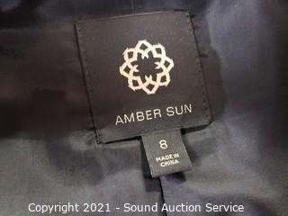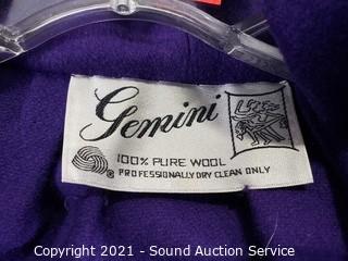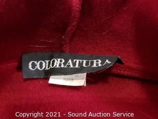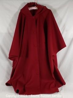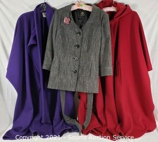 Lot Details: Includes Amber Sun polyester blazer size 8, Gemini 100% wool purple cloak style cardigan and Color Atura red wool hooded cloak.